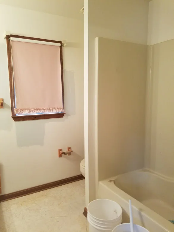 We completely demolished this room down to a blank slate. The closet was so cramped and lacked function and it's not a huge space to begin with so I knew I wanted the wall between the tub and the toilet gone for extra natural light and sight lines. Bobby and I had a first with this bathroom, we actually hired some out. We had never tackled tilling a shower before and wanted to watch it being done correctly before we jumped in. Leaking tiles are not an easy or fun thing to fix, so we shadowed a contractor for this. Needless to say, we won't be doing it again (it turned out fine, it's just not our thing.. plus once I was told my design choices were ugly I was pretty much over it). Anyway -- the rest of the room is entirely DIY.