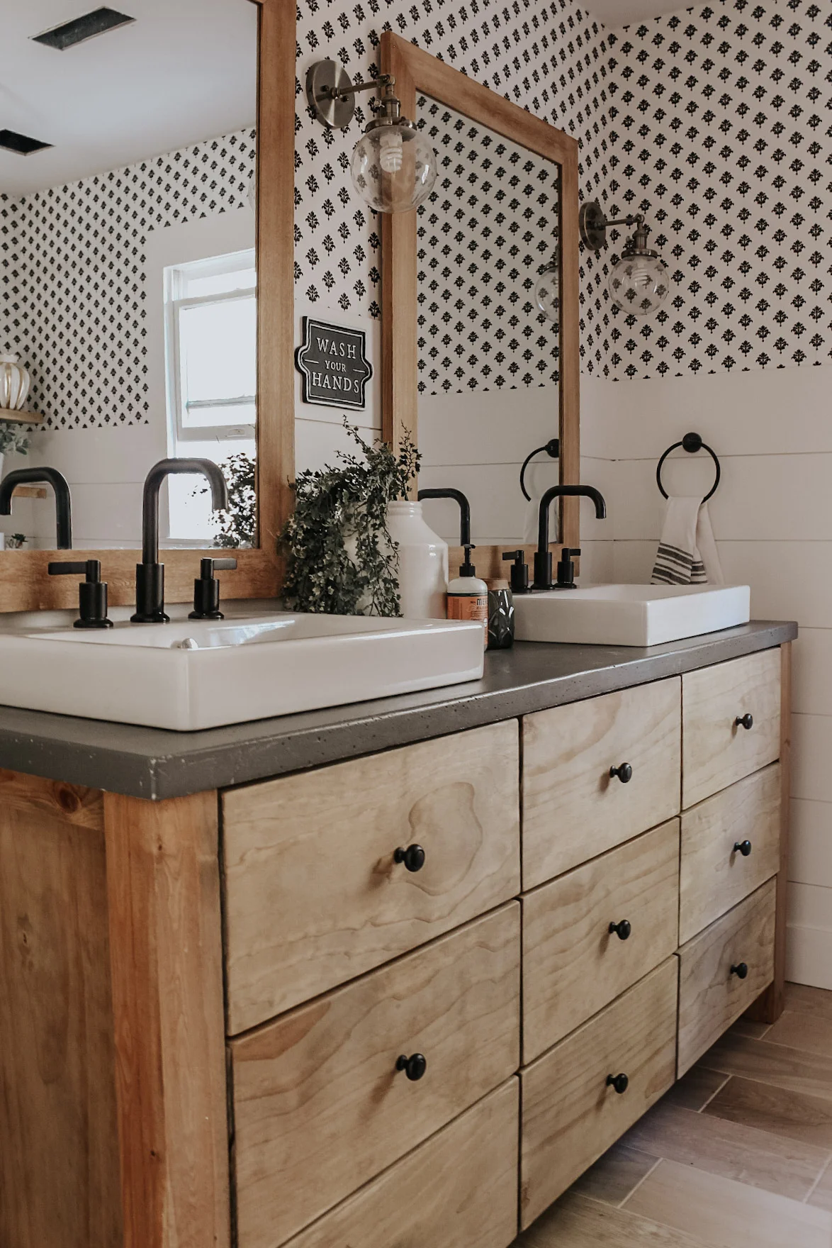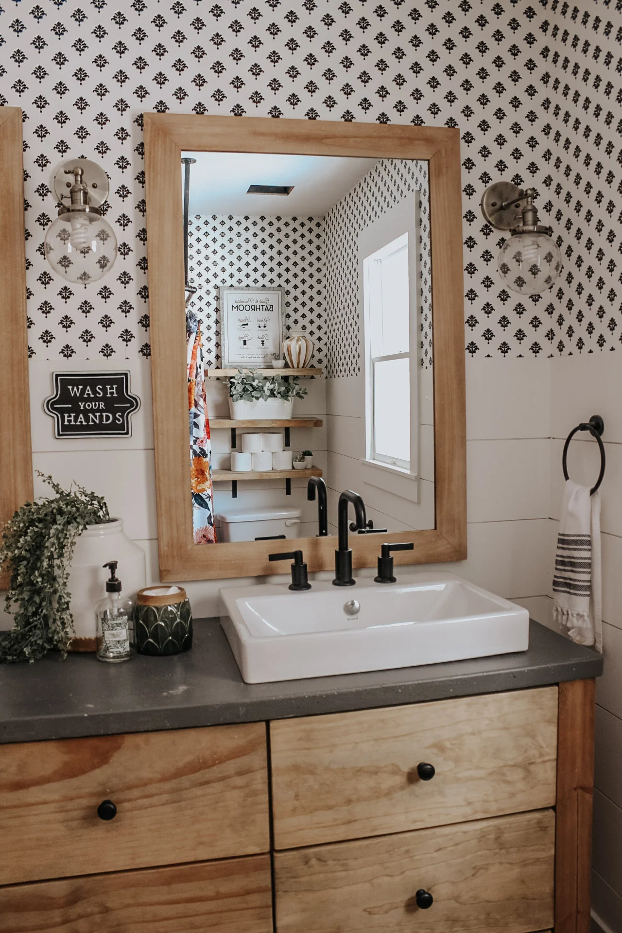 This is easily one of my favorite transformations we’ve done to date. We’re currently brainstorming design ideas for our other bathroom and I’m not quite sure how I’m going to top this one. I can almost guarantee there will be wallpaper though!