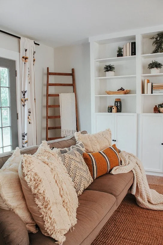 All of the cream texture on the couch with the backdrop of the wood ladder to break up the wall of grey/white adds so much more interest. Also, the curtains guys. I swear I have a deep emotional connection to these curtains. Life changed when they came into our home. The quality is amazing, the floral motif print is so unique and I’m in love with the color palette. If you love them as much as I do please don’t hate me (they are sold out) but seriously, I. love. them.