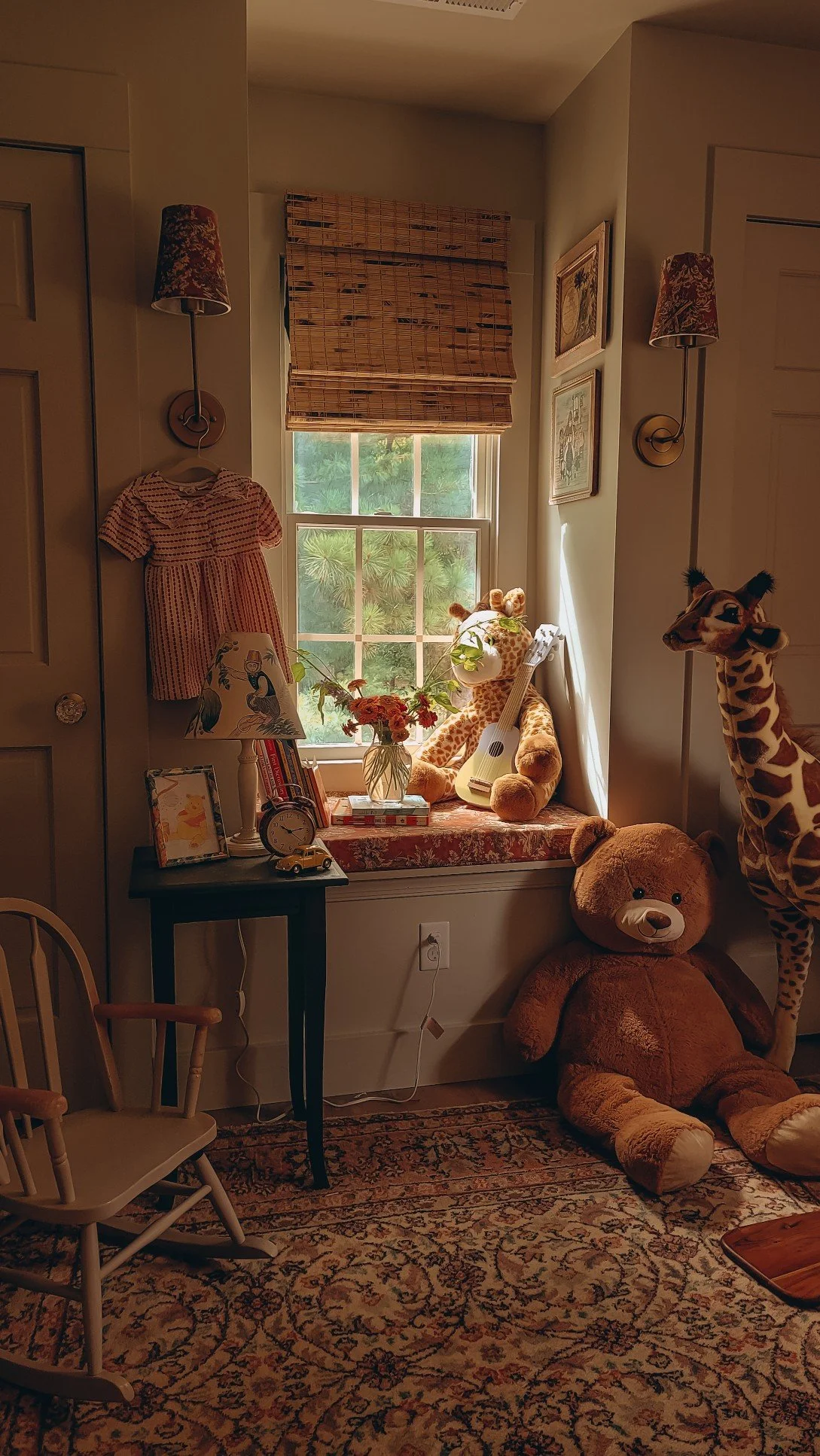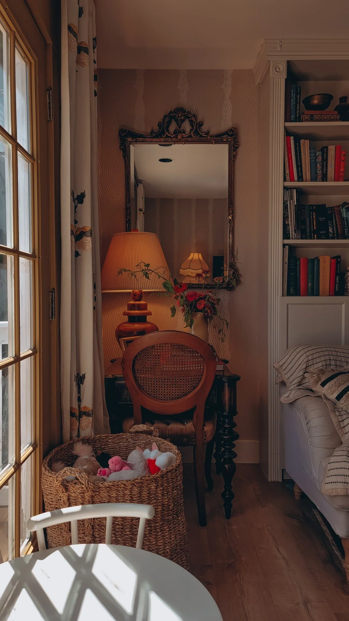 herringbone flooring | toy basket | Vivienne’s outdoor playset |